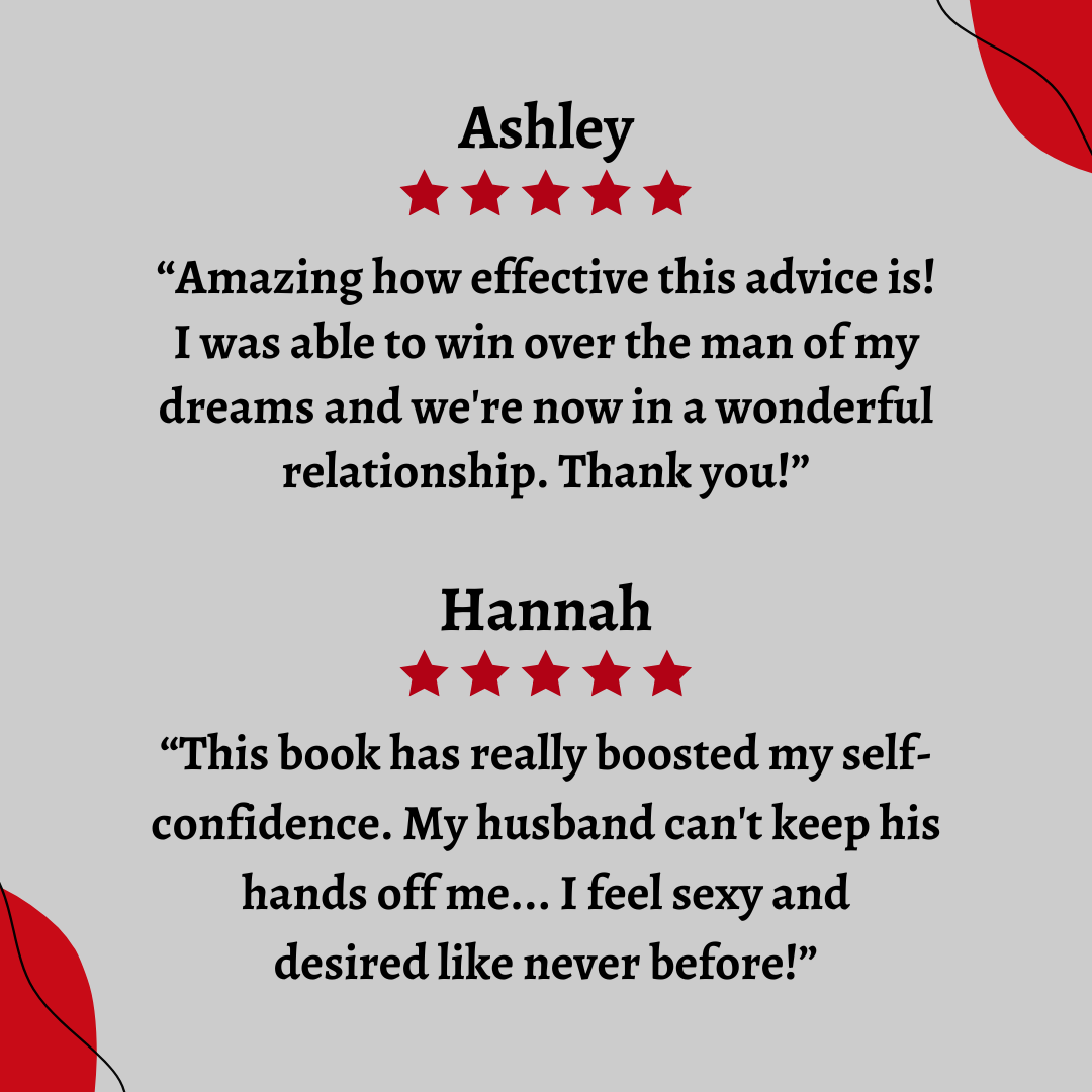 I spent years studying the psychology of attraction, expanding my knowledge and learning the most advanced methods. My deep passion for helping women realize their potential and become confident, strong, and desired motivated me to write my ebooks.